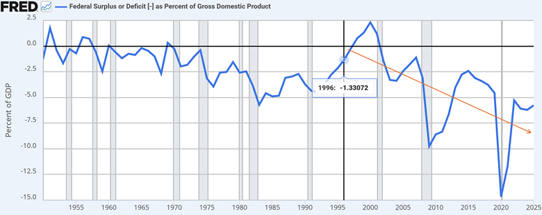 In the early days of the current administration, Treasury Secretary Scott Bessent argued that we could achieve 3% real (excluding inflation) growth, while cutting deficits down to 3% of GDP. As last year progressed, those arguments were abandoned. Real Growth has been less than 3% and deficits are still running at about 6% with an upward trend for 2026. The problem, as Mr. Bessent knows, is that had we cut spending or raised taxes adequately to even target 3% deficits, there is broad agreement among economists that growth would have materially slowed. Once the excess spending is embedded, taking it away is really hard.